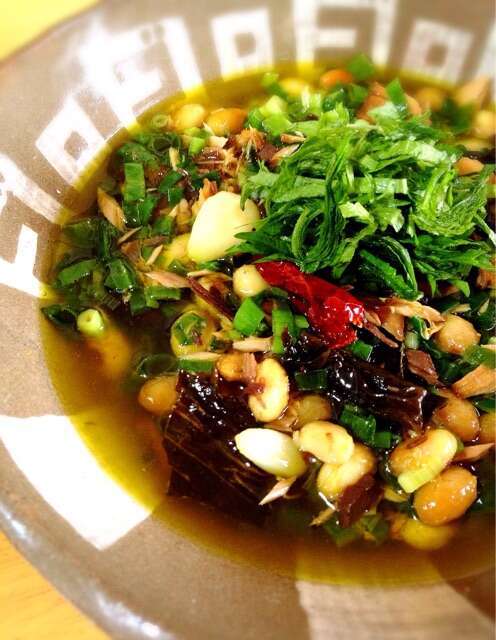弱火でしばらく加熱して、納豆が柔らかく、なまりがカリッとしたらネギを加えて火を止めます。