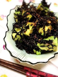 戻したひじきとアボカドを、レモン汁、オイル、醤油で和える
