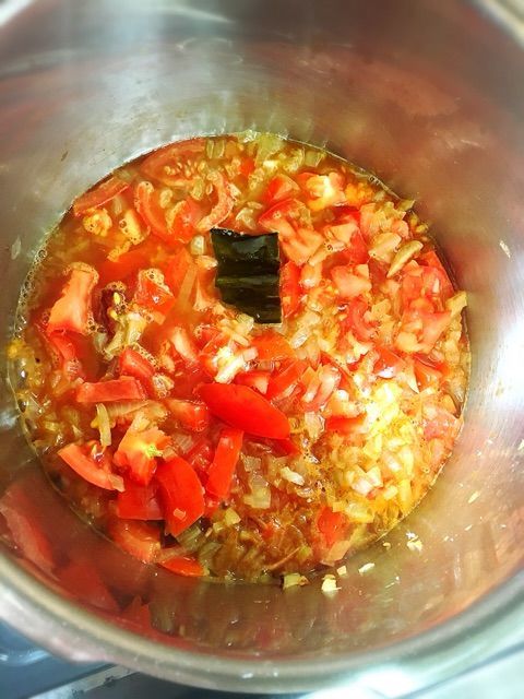 ニンニクとフレッシュトマトを使い、圧力鍋で煮込みます。