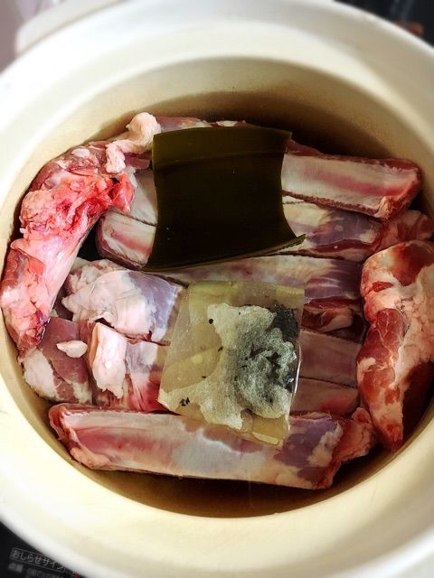 全体馴染んだら火を止め、すべてスペアリブの土鍋に加えます。