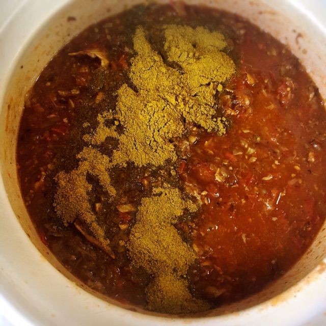 しっかりと煮詰まってきたらカレー粉を加えてしばらく煮込み、味を見て塩、カレー粉を追加します。