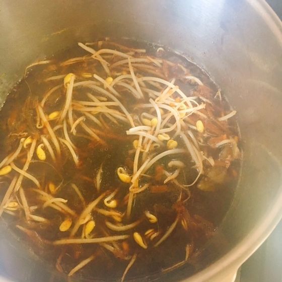 手羽元を圧力鍋で煮込んで鶏出汁スープを作りもやしを麺代わりにたっぷり加えたもやしラーメン。