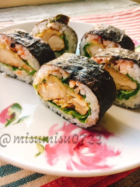 トースターで焼くだけ簡単タンドリーチキンご飯と海苔で包んだ海苔巻きです。