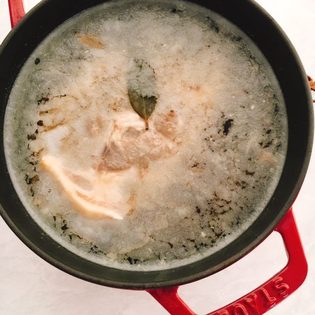 今回茹で汁にはポットローストの煮汁を再利用しています。
