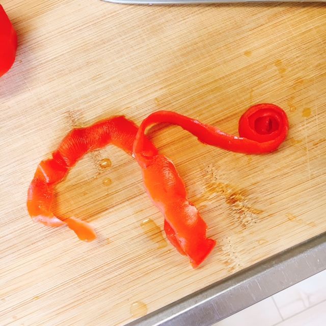 ハムを巻いて細く切ったハムで止めて作る方法もありますが、リボンカッターがあると便利。