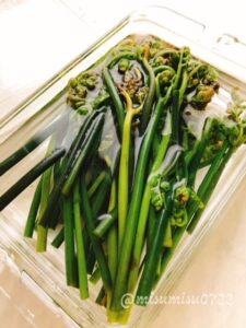 山菜の中でもアクの強いわらびは必ずアク抜きしてから使います。