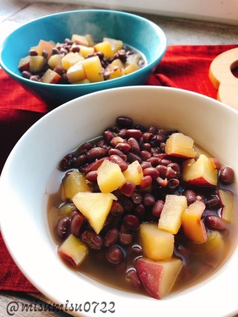 甘味付けにさつまいもとりんごを加えています。レーズンを加えるのもオススメ!