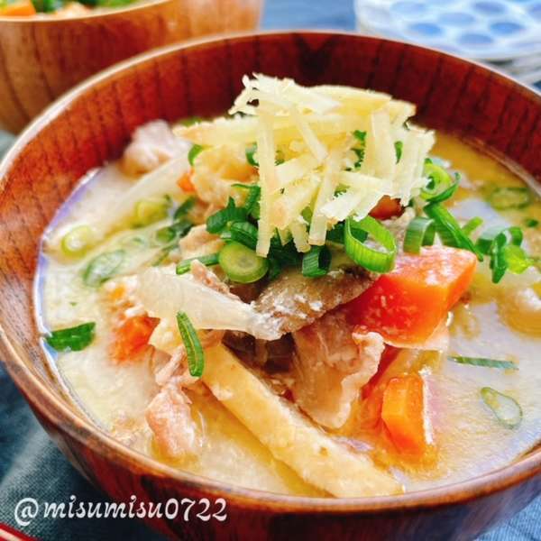 生姜入り酒粕豚汁(動画レシピ)/Sake lees pork miso soup with ginger.