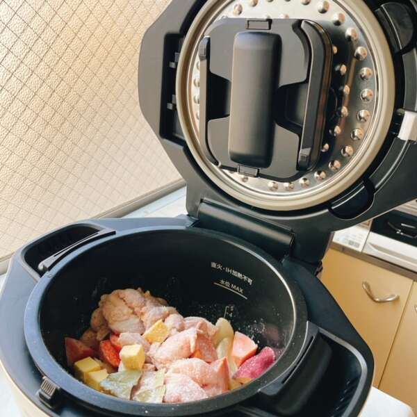 蒸気が上がってきたらごく弱火にし、40分ほど煮込みます