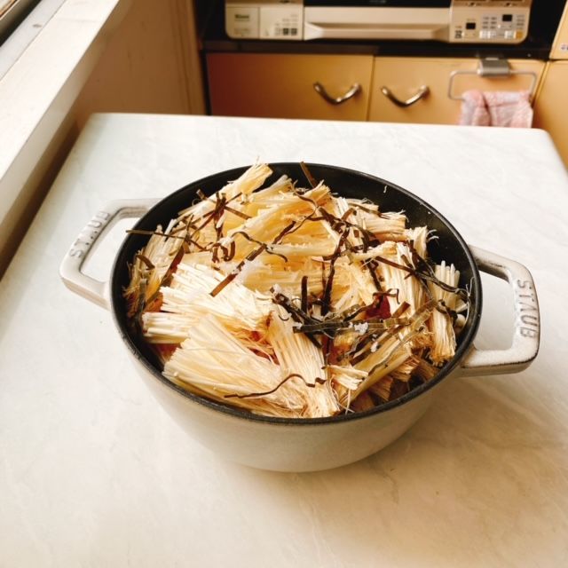キッチンバサミで昆布を細切りして加えます。