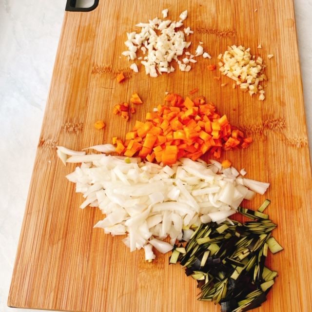 先ほど刻んだ野菜を加えます。