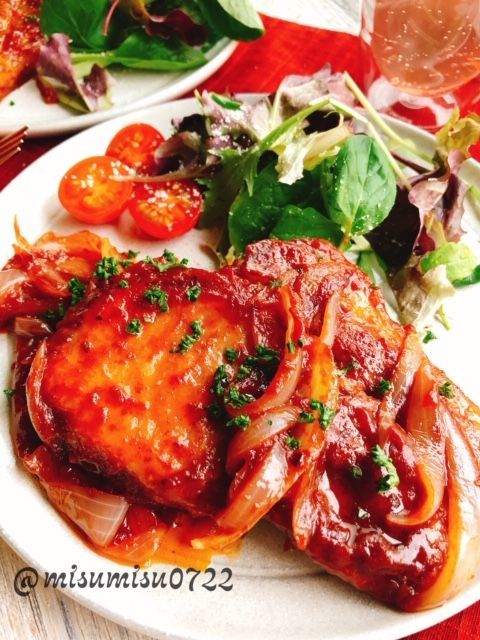 豚ロースをこんがり焼いてトマトケチャップを絡める簡単レシピです。