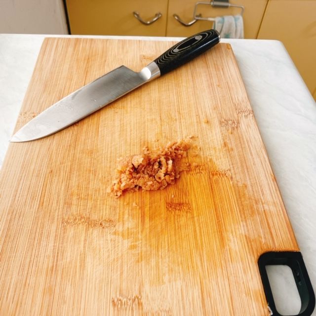 種を取り包丁で細かく叩きます。