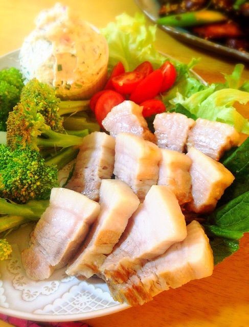 塩豚でしっとり蒸し豚ポッサム風(動画レシピ)/Steamed pork made with salted pork.