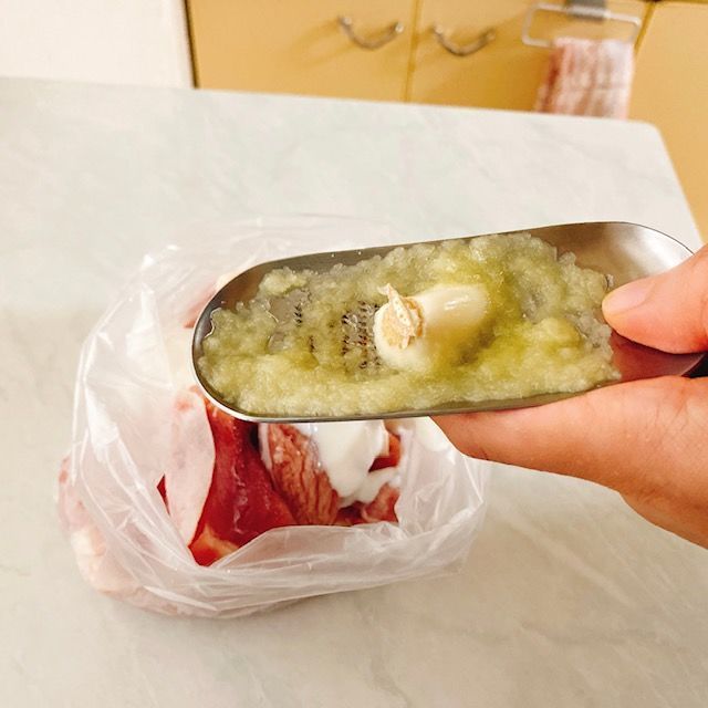 - Put 1 in a plastic bag and add yogurt and garlic, and then rub it and stay in the refrigerator for a night.
