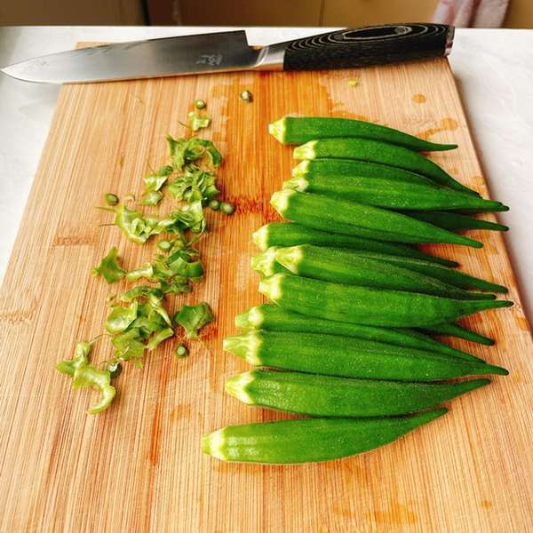 *育ちすぎたオクラなどで、スジばって硬い場合は食べられないので切り落としましょう。